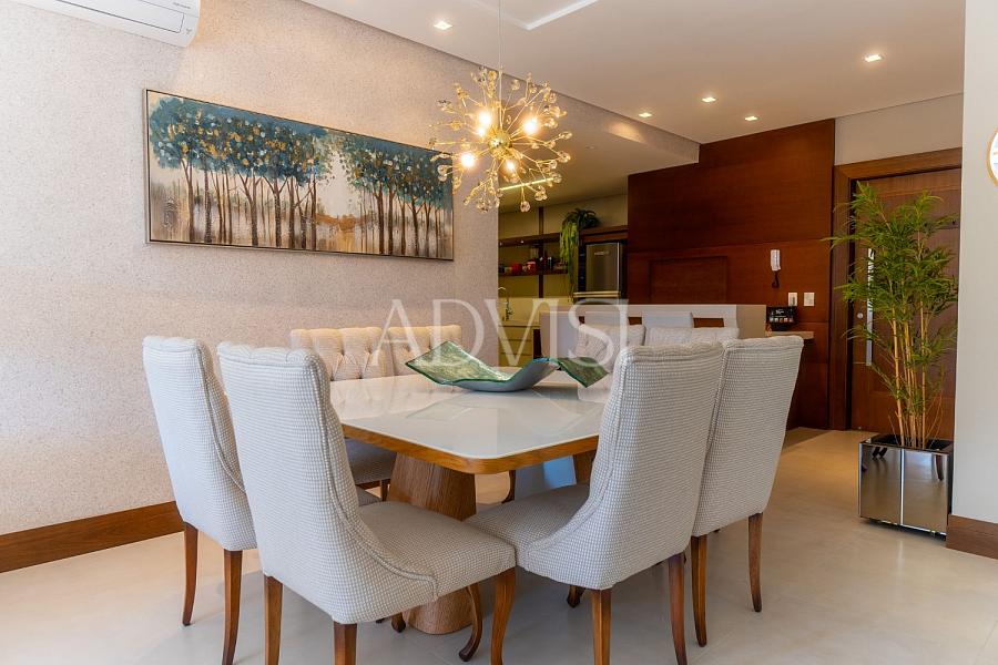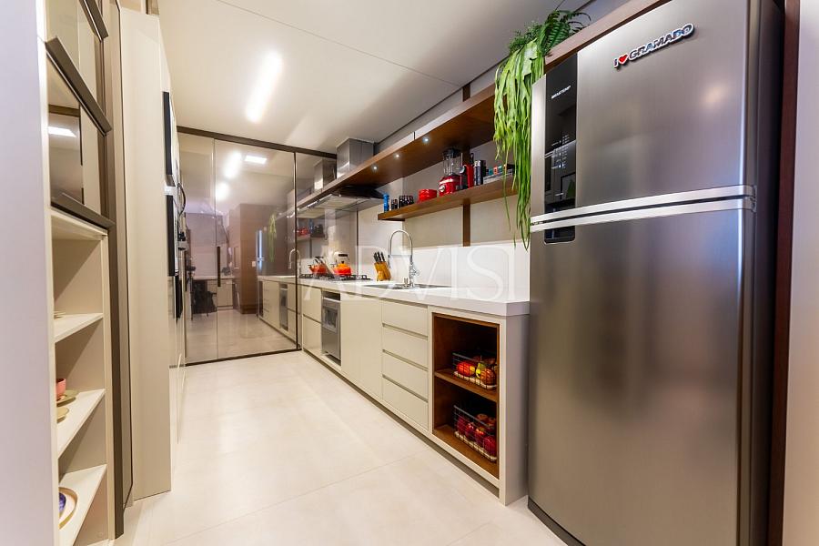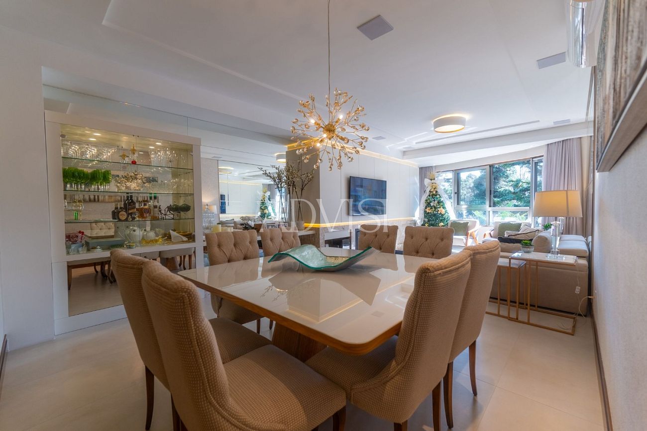 Com 162m² de área privativa, o apartamento oferece 3 suítes amplas, living integrado com sacada fechada e vista para o verde, sala de jantar em conceito aberto, cozinha equipada, área de serviço e lavabo.