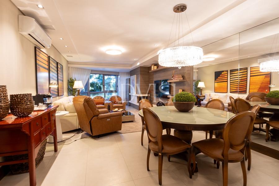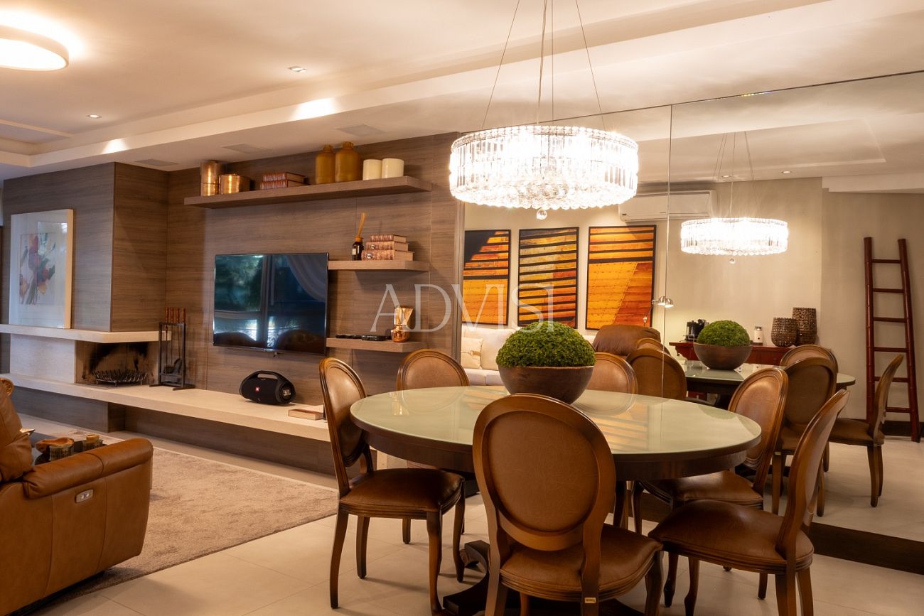 Com 162m² de área privativa, o apartamento oferece 3 suítes amplas, living integrado com sacada fechada e vista para o verde, sala de jantar em conceito aberto, cozinha equipada, área de serviço e lavabo.