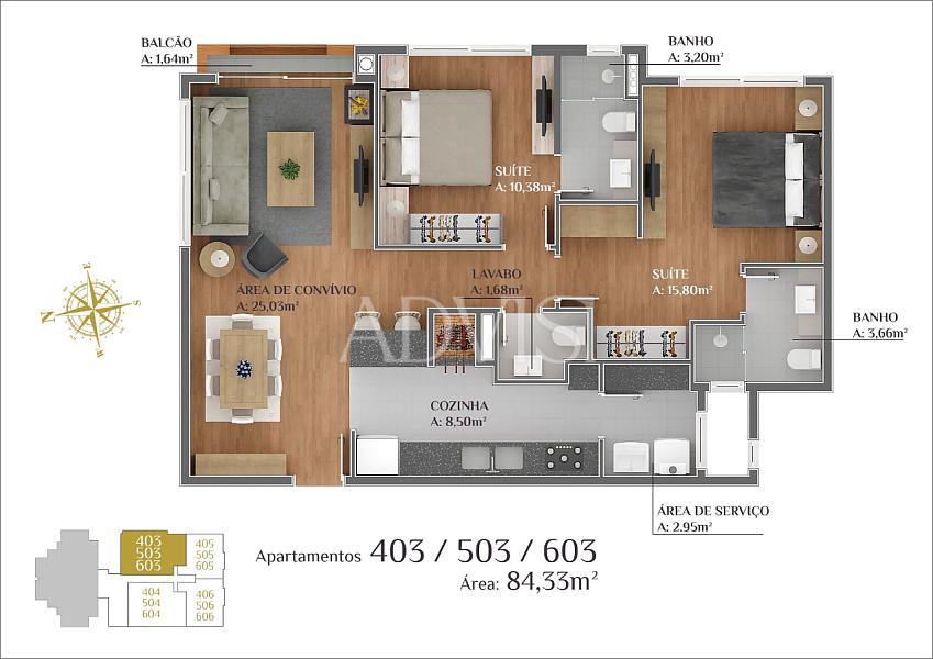 84,33 m² de área privativa