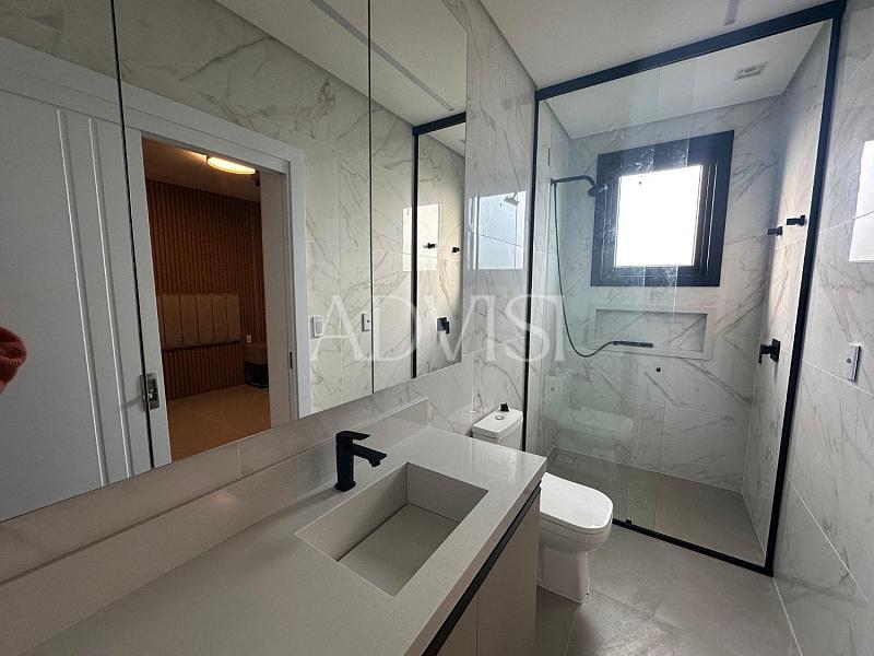 Com 204 m² de área privativa, a casa conta com 4 suítes, garantindo privacidade e comodidade para todos os moradores. São 5 banheiros, projetados para oferecer funcionalidade também ao receber visitas.