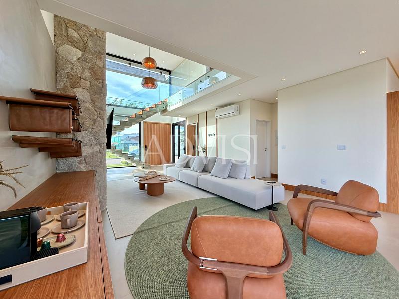 Com 327m² de área construída e frente norte, o imóvel conta com 4 suítes individuais, sendo uma térrea e três no pavimento superior, garantindo praticidade e privacidade. Totalmente mobiliada e decorada, a casa está pronta para uso, com ambientes integrados, excelente iluminação natural e acabamentos de alto padrão.