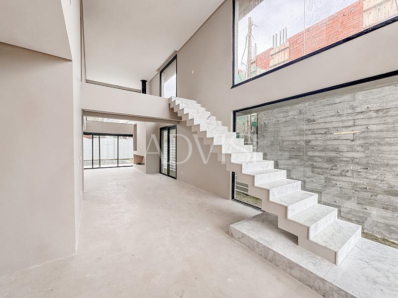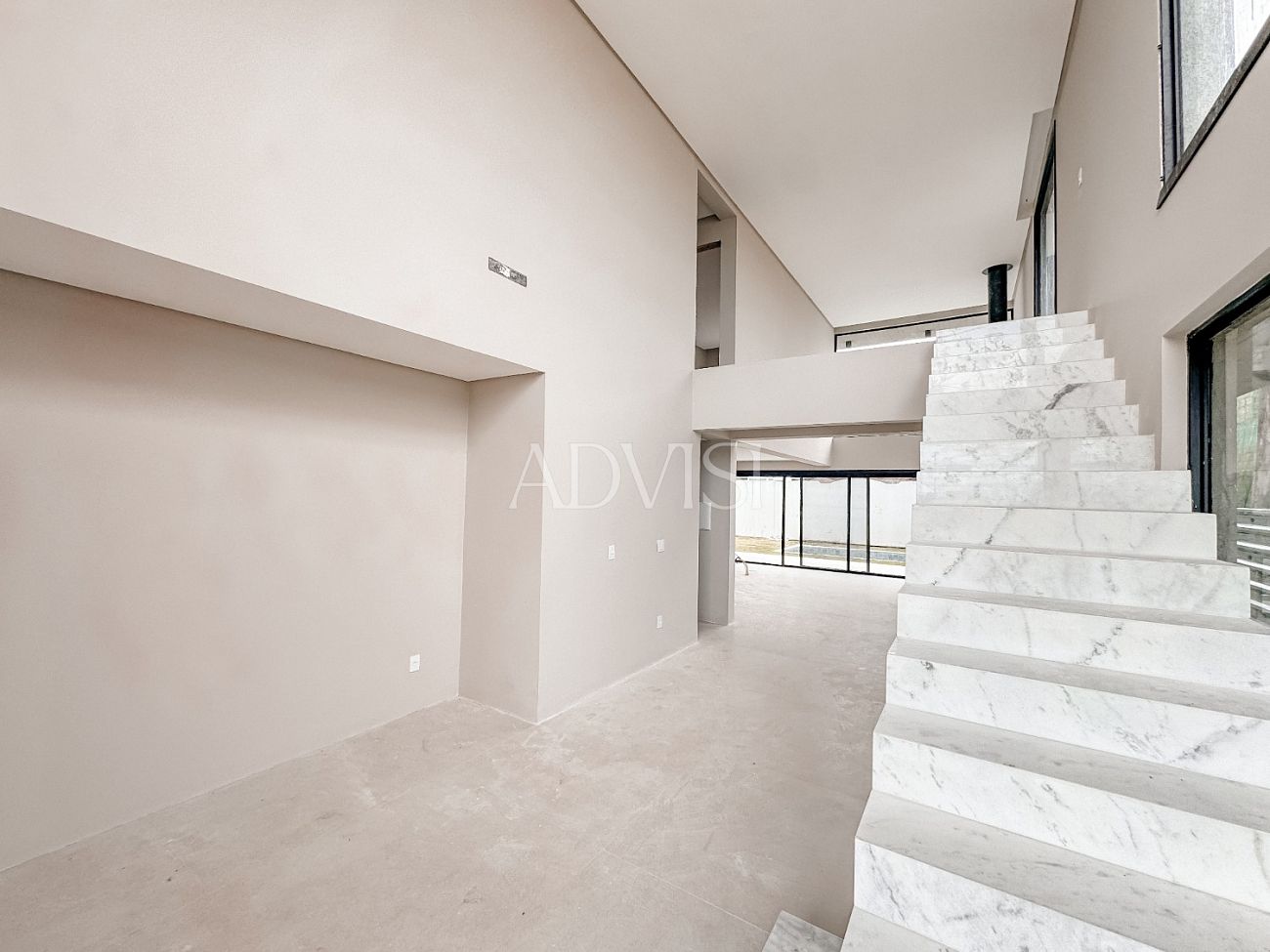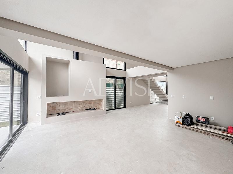 Com 4 suítes, sendo uma no térreo para maior comodidade, a residência possui living amplo com 3 ambientes, pé direito duplo e lareira, criando uma atmosfera elegante e acolhedora.