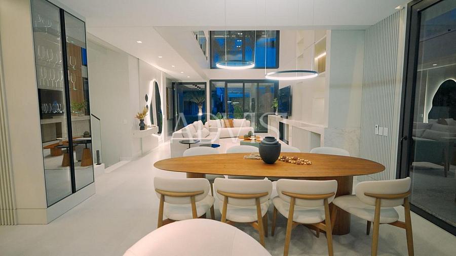 Com 313m² de área privativa, a residência oferece 5 suítes, incluindo uma suíte master com sacada privativa, garantindo conforto, privacidade e ventilação natural em todos os ambientes.