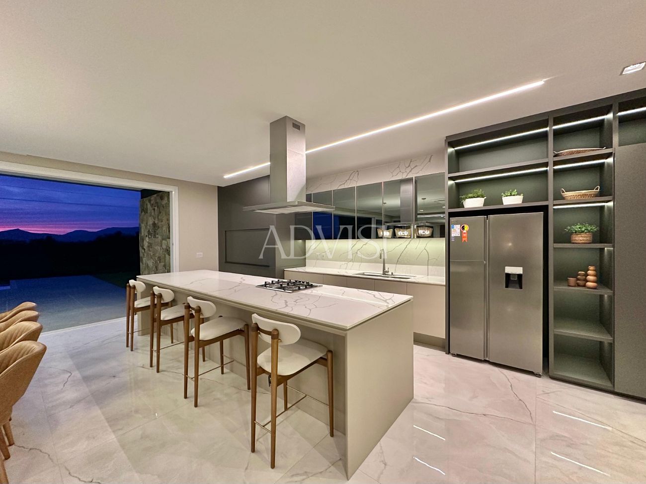 Composta por 5 suítes, lavabo, living amplo com ambientes integrados e um espaço gourmet perfeito para receber, a casa está totalmente mobiliada e decorada, pronta para morar ou veranear com requinte.