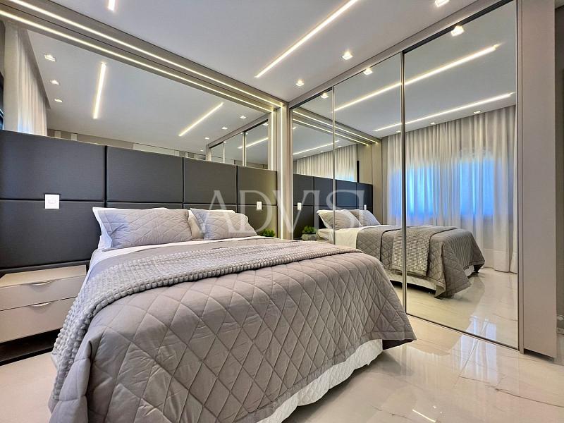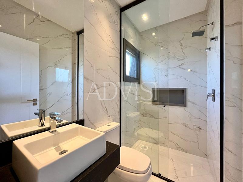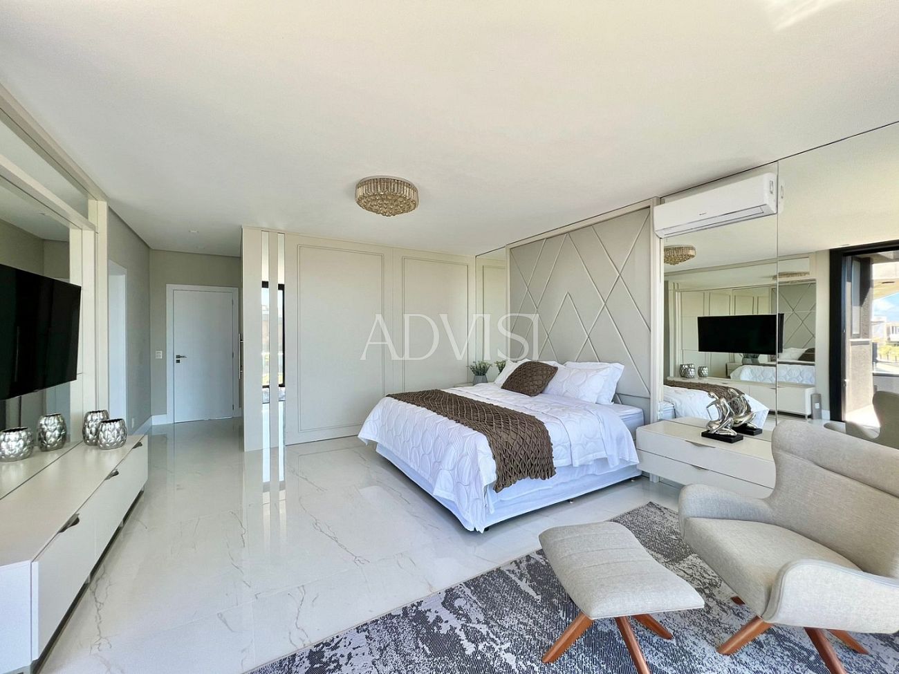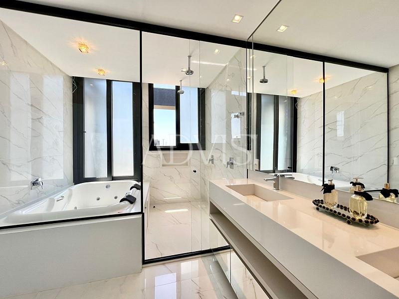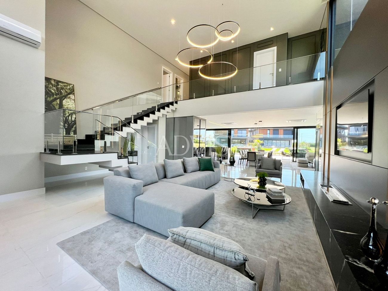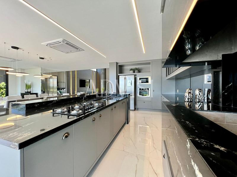 A casa conta com 5 suítes, incluindo uma suíte máster, além de lavabo, ambientes amplos e integrados, e excelente iluminação natural em todos os cômodos. O projeto contempla ainda elevador, garantindo conforto e acessibilidade em todos os níveis da residência.