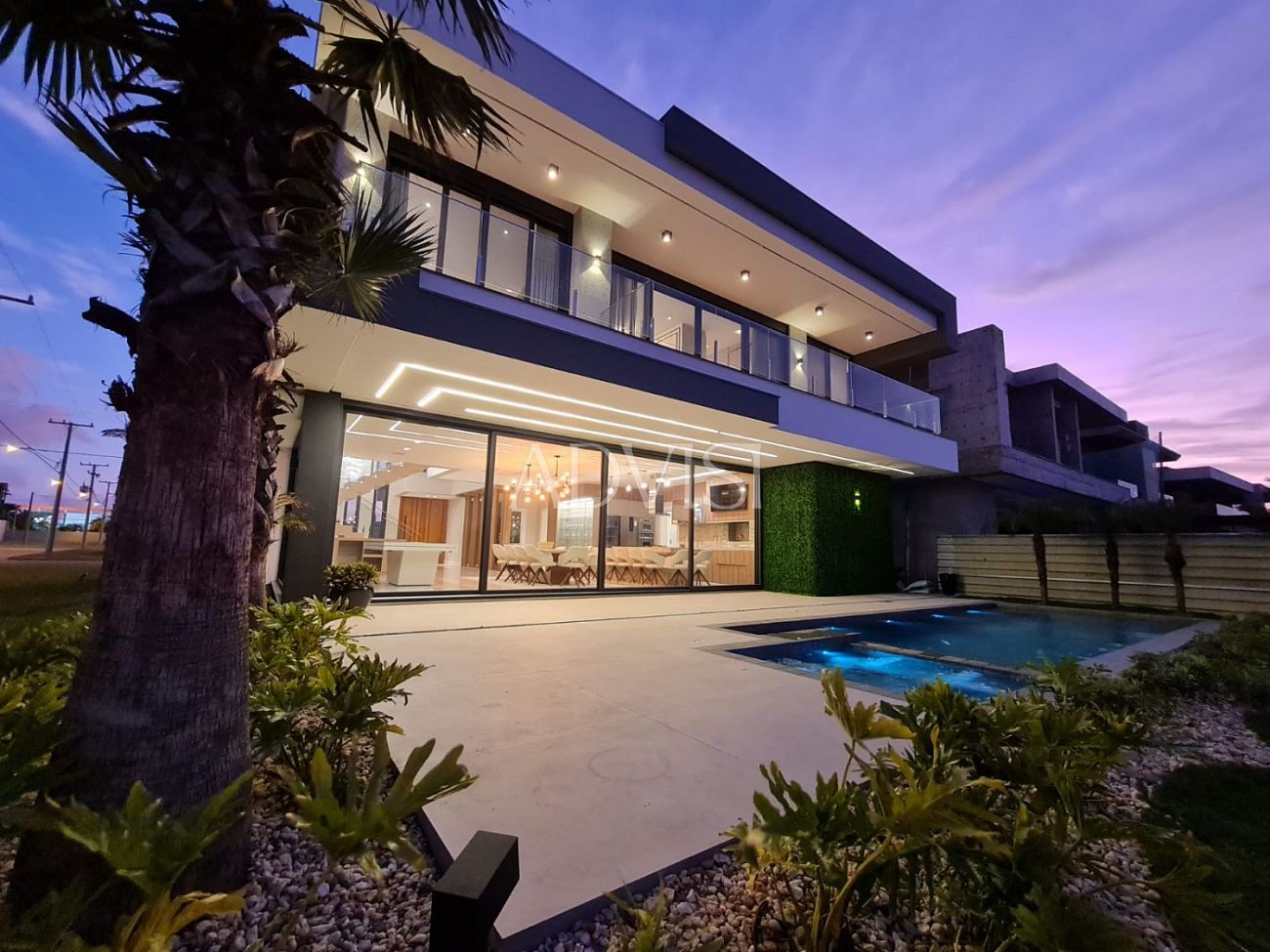 São 5 suítes, além de lavabo, com ambientes amplos, integrados e excelente iluminação natural em todos os espaços. O projeto valoriza o bem-estar com piscina de concreto, paisagismo completo e áreas sociais que conectam lazer e praticidade com harmonia.