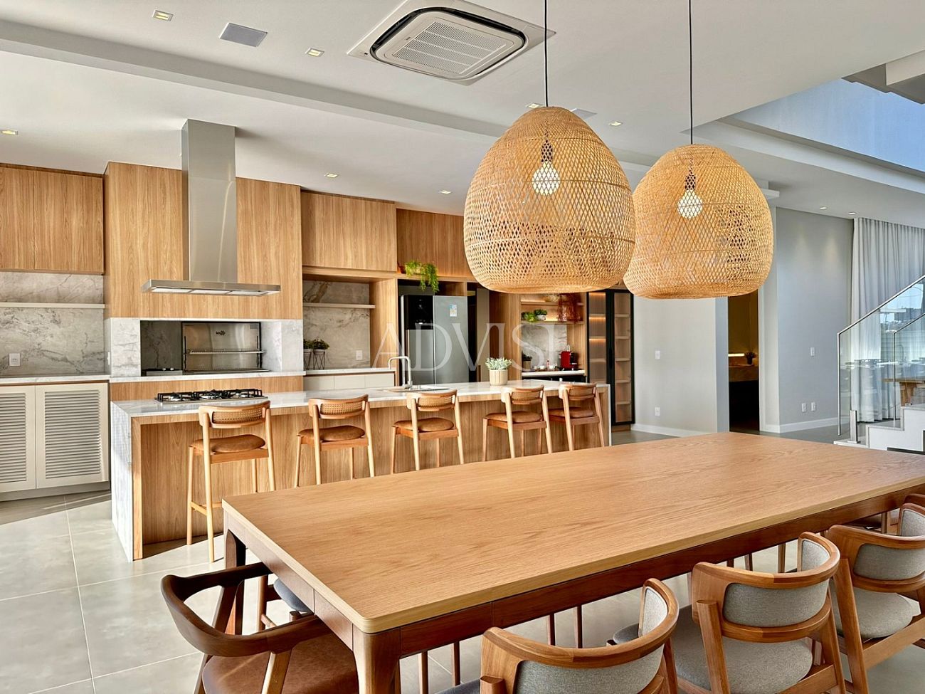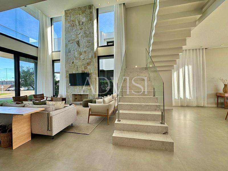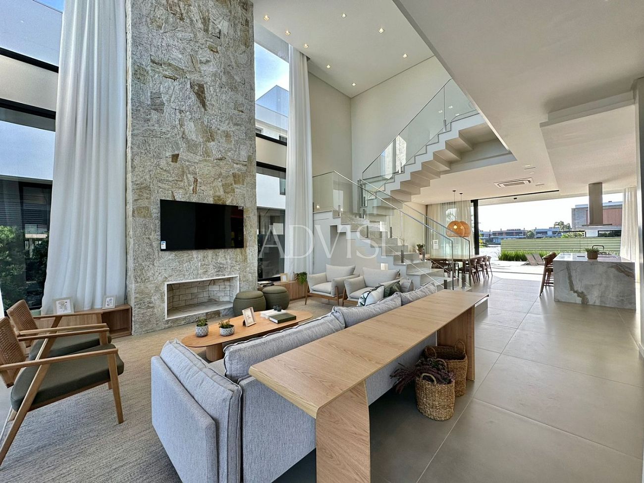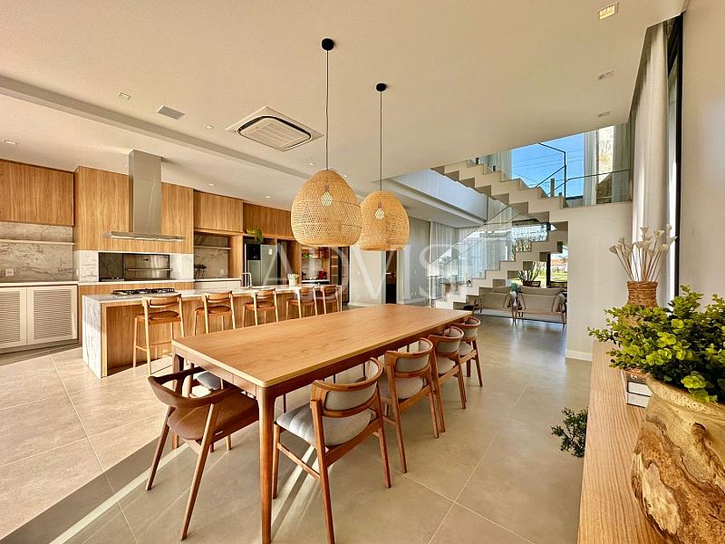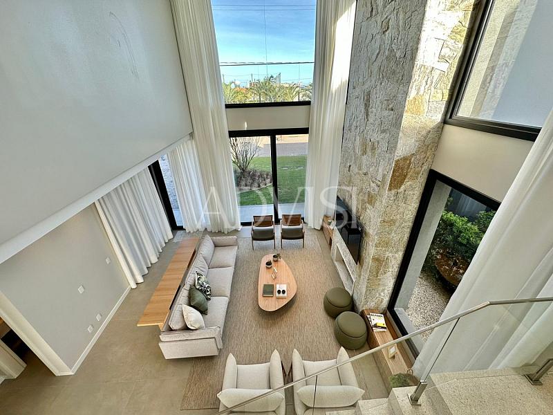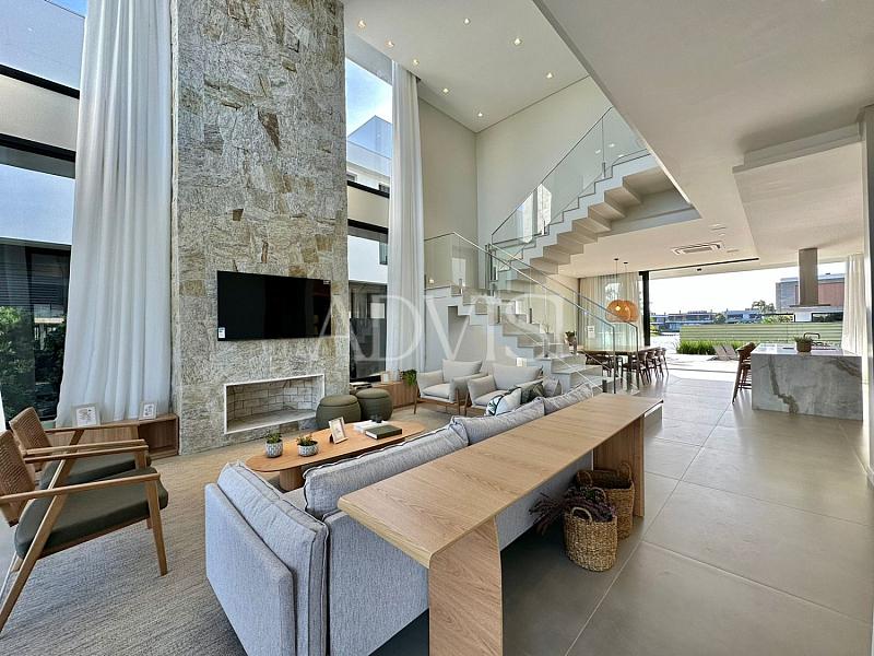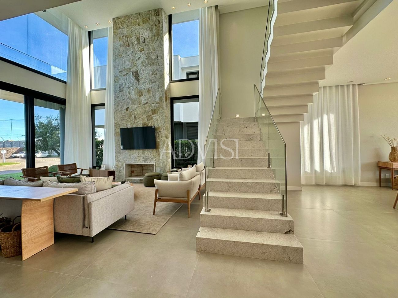 São 5 suítes individuais, sendo uma suíte térrea e uma suíte master, além de lavabo, living integrado com lareira, pé-direito alto e excelente iluminação natural em todos os ambientes.
