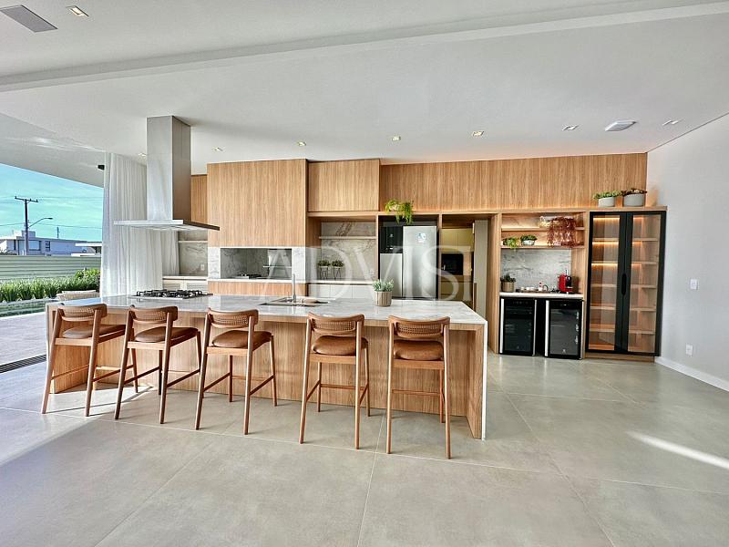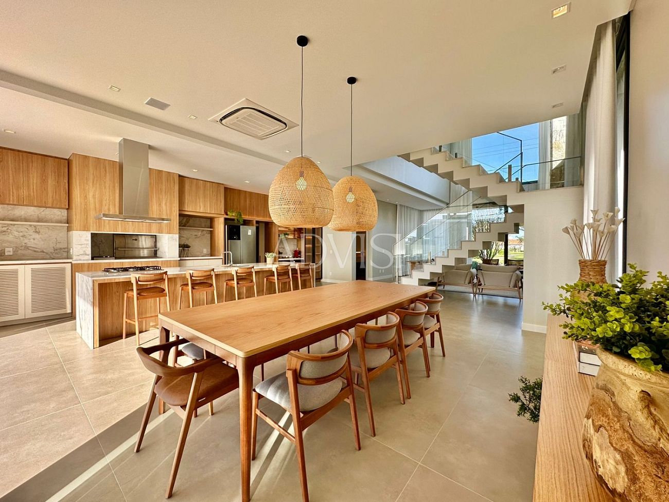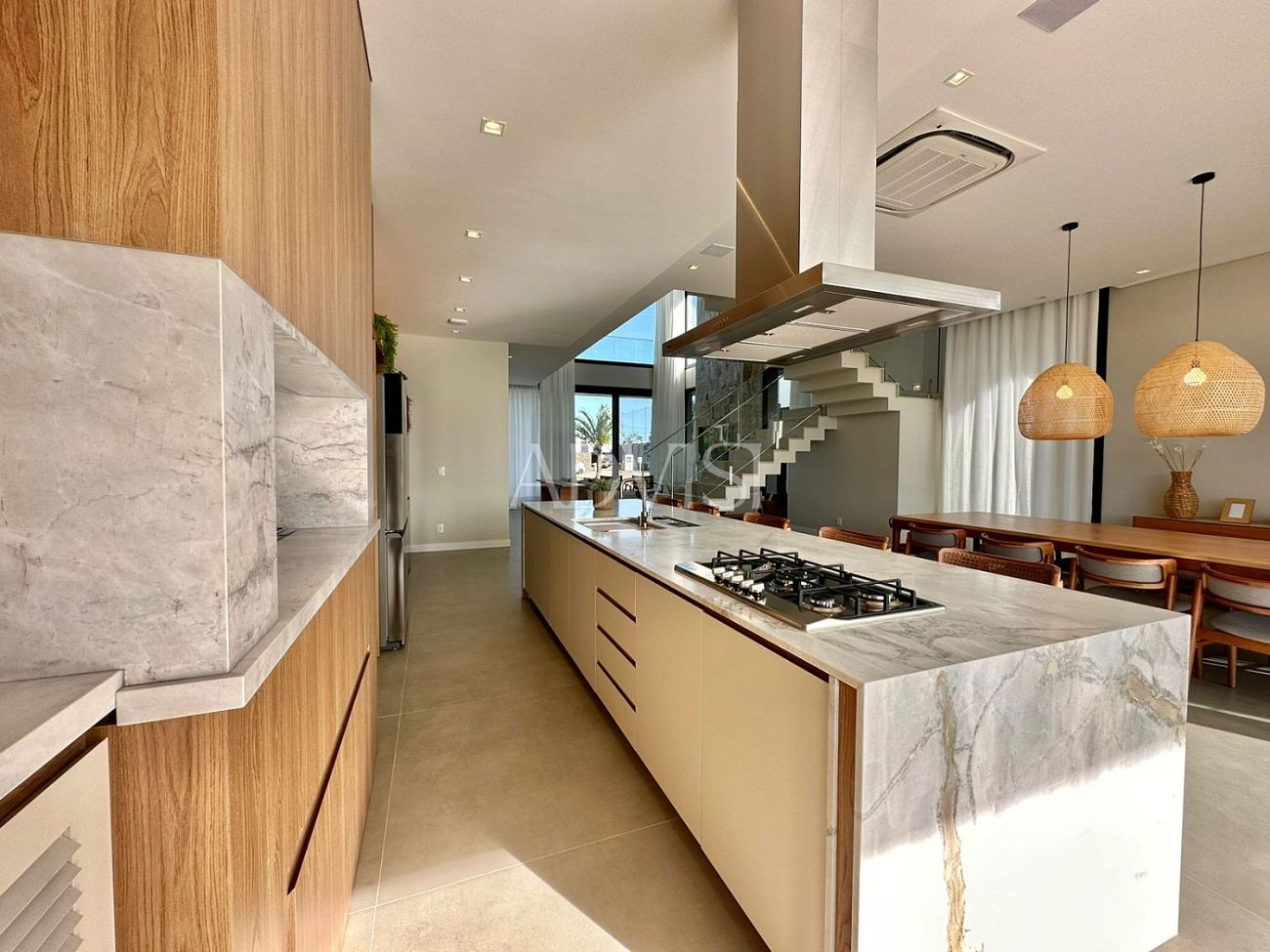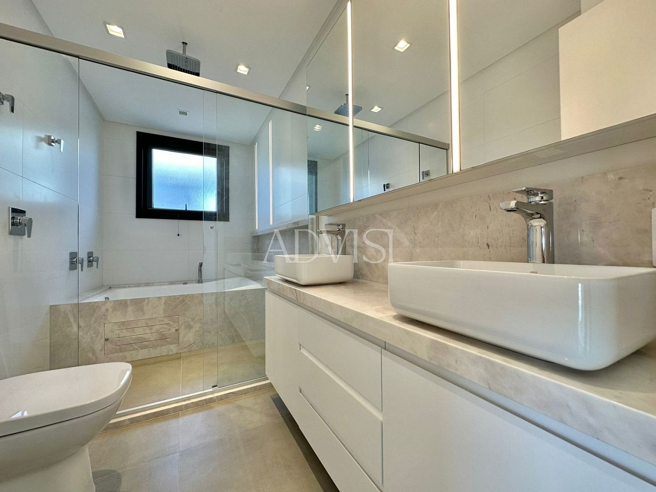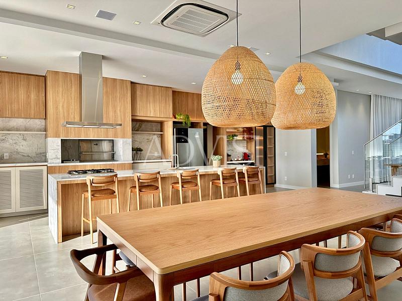 São 5 suítes individuais, sendo uma suíte térrea e uma suíte master, além de lavabo, living integrado com lareira, pé-direito alto e excelente iluminação natural em todos os ambientes.