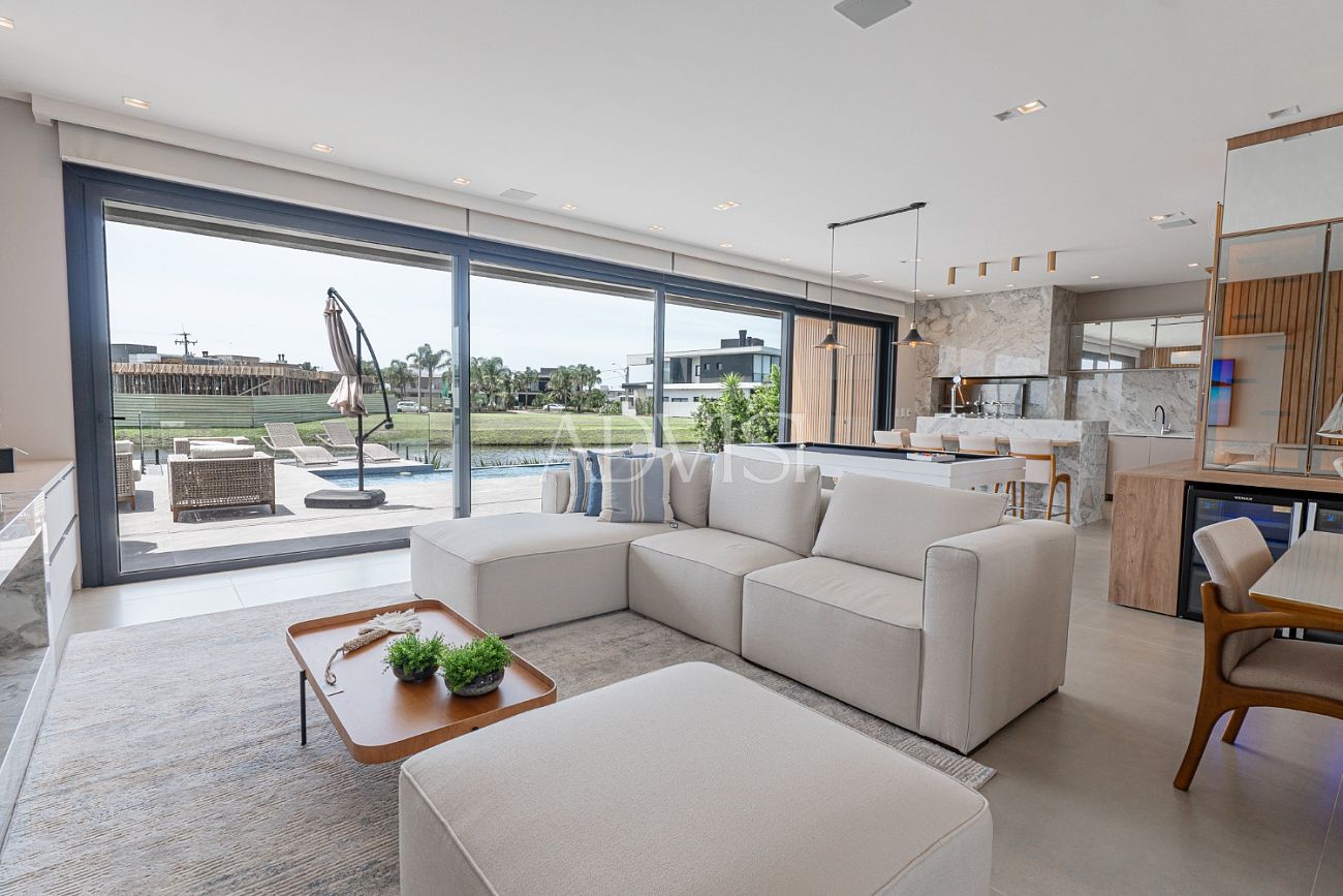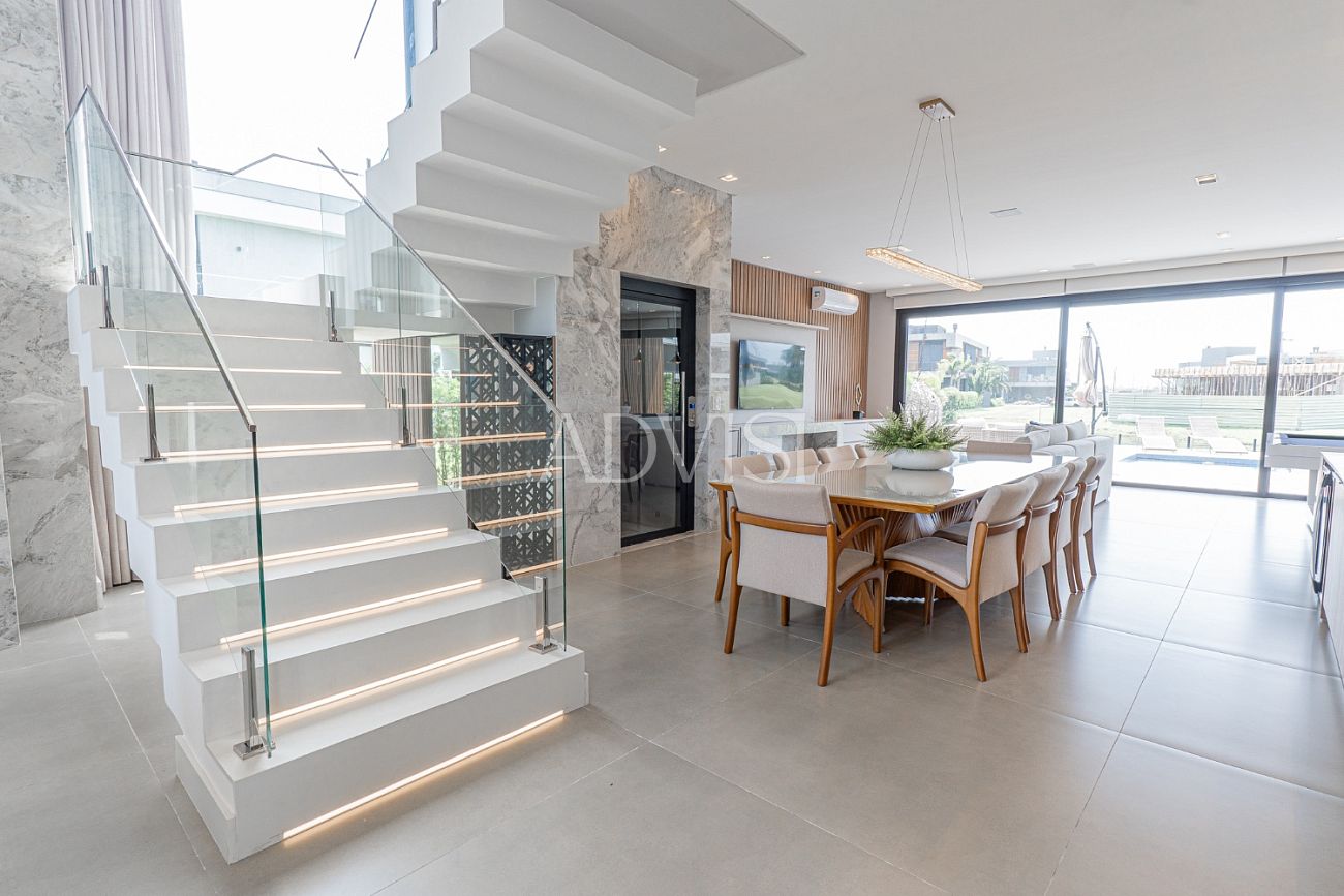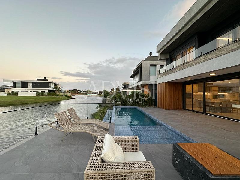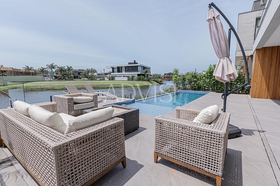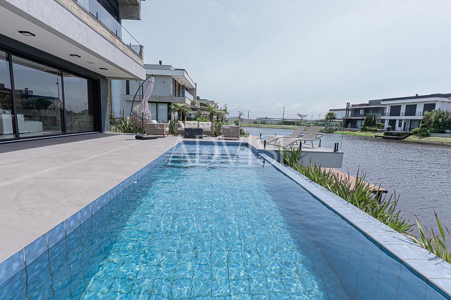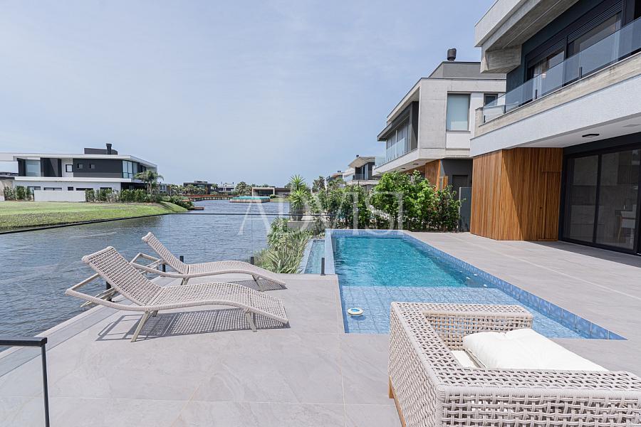 Sobrado Beira Lago com 5 Suítes, Piscina e Alto Padrão de Acabamento – 418 m² Privativos