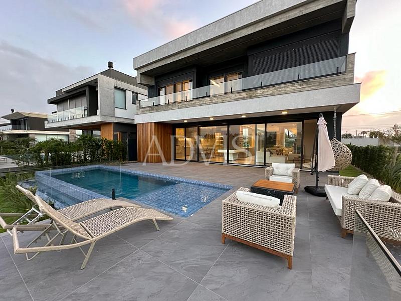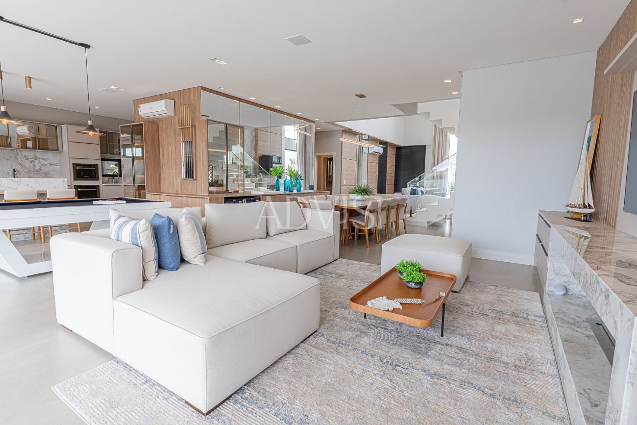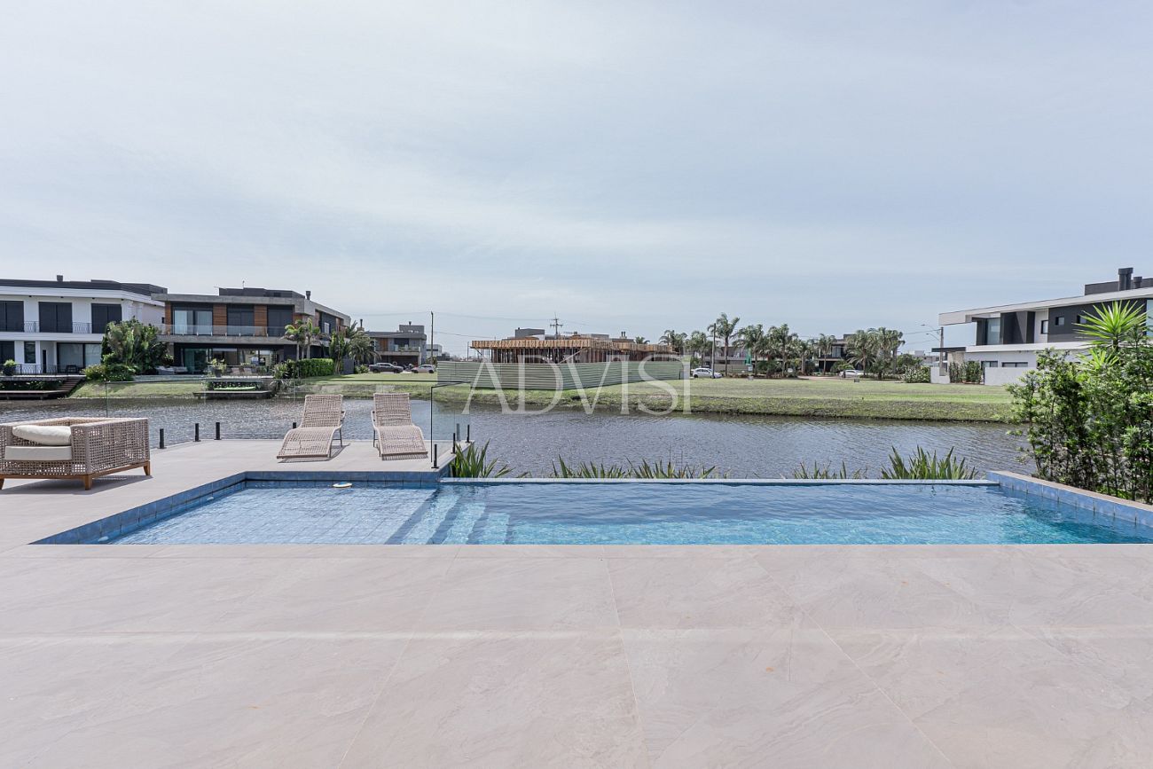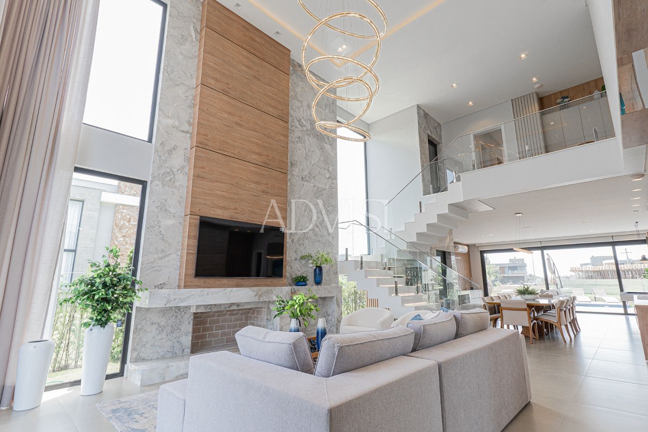 Sobrado Beira Lago com 5 Suítes, Piscina e Alto Padrão de Acabamento – 418 m² Privativos