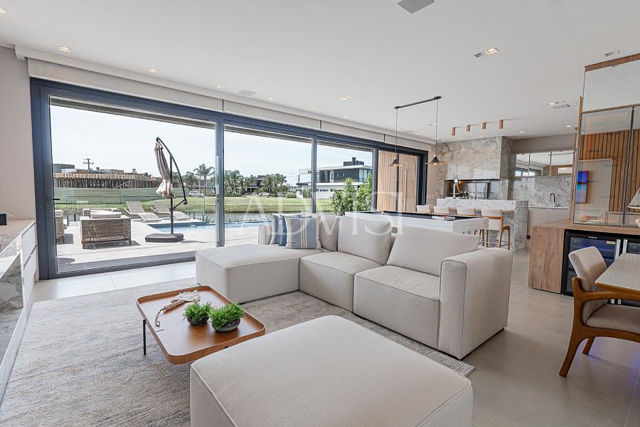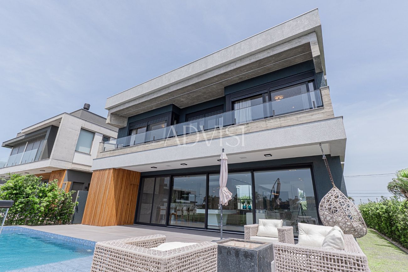 Este elegante sobrado de 418 m² de área privativa une conforto, sofisticação e localização privilegiada à beira do lago, oferecendo uma experiência de moradia completa no Litoral Gaúcho.