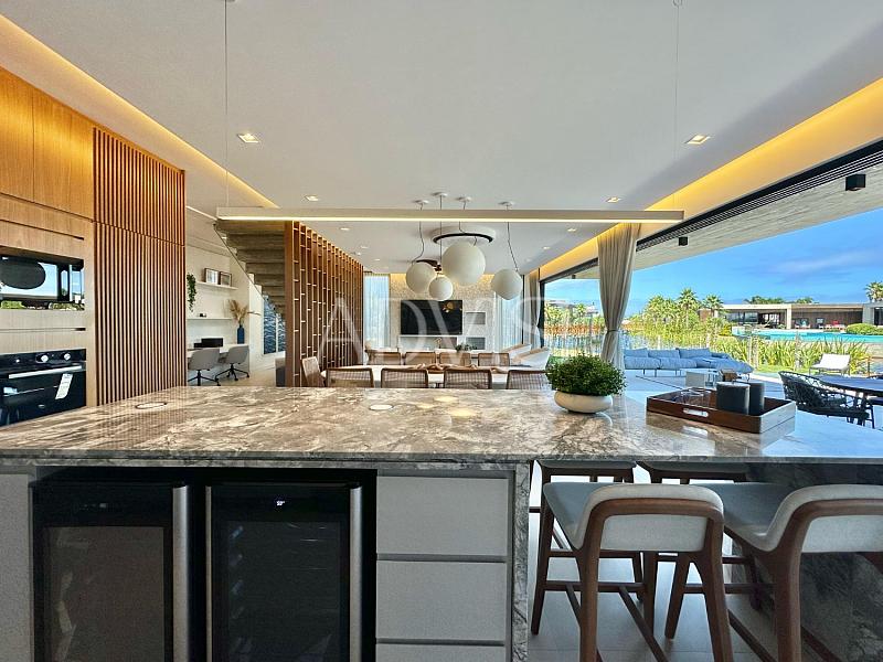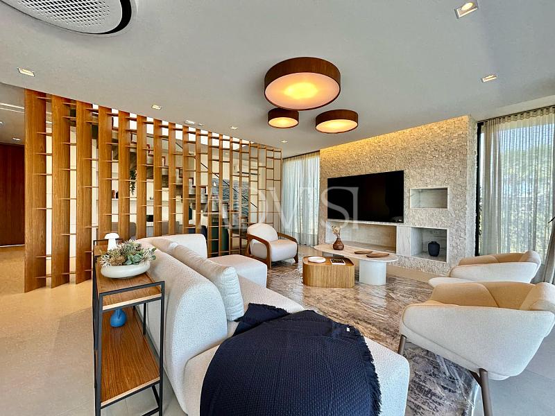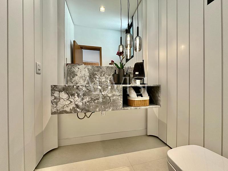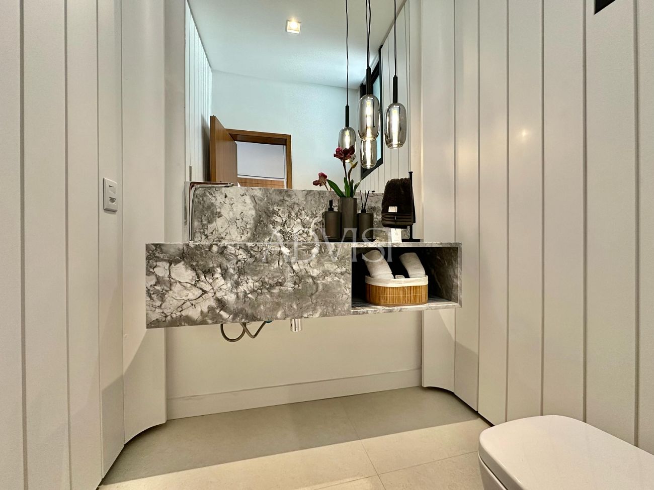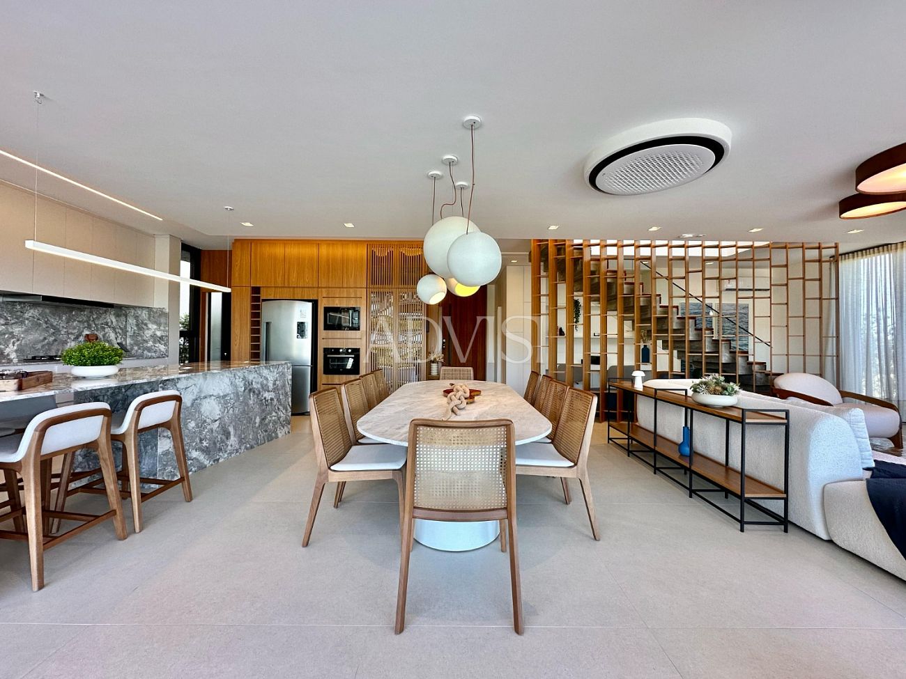 Conta com 5 suítes, sendo 2 suítes master e uma suíte térrea, além de home office, lavabo, living amplo e integrado com lareira, tudo totalmente mobiliado e finamente decorado.
