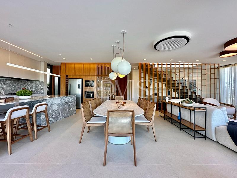Este elegante sobrado à beira do lago oferece 388 m² de área privativa e um projeto pensado para proporcionar conforto, sofisticação e integração com a natureza.