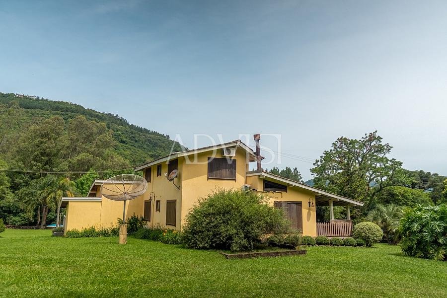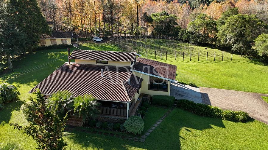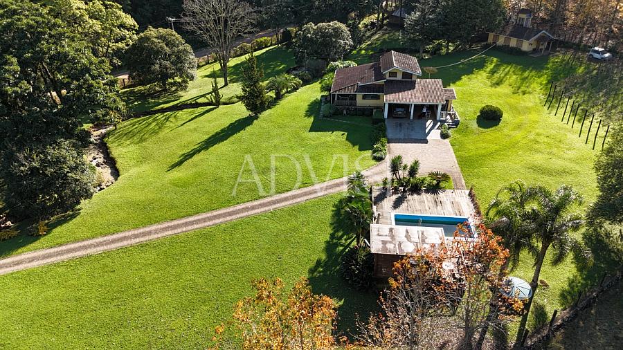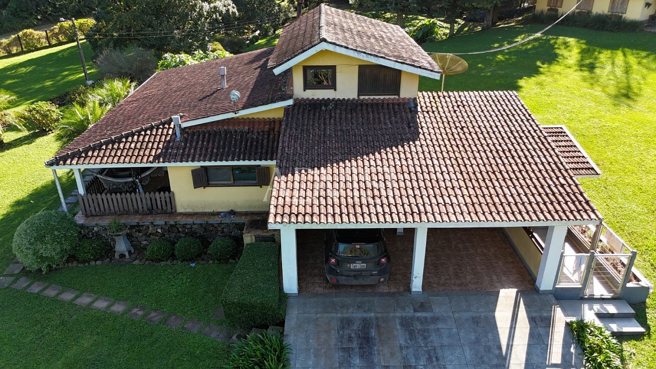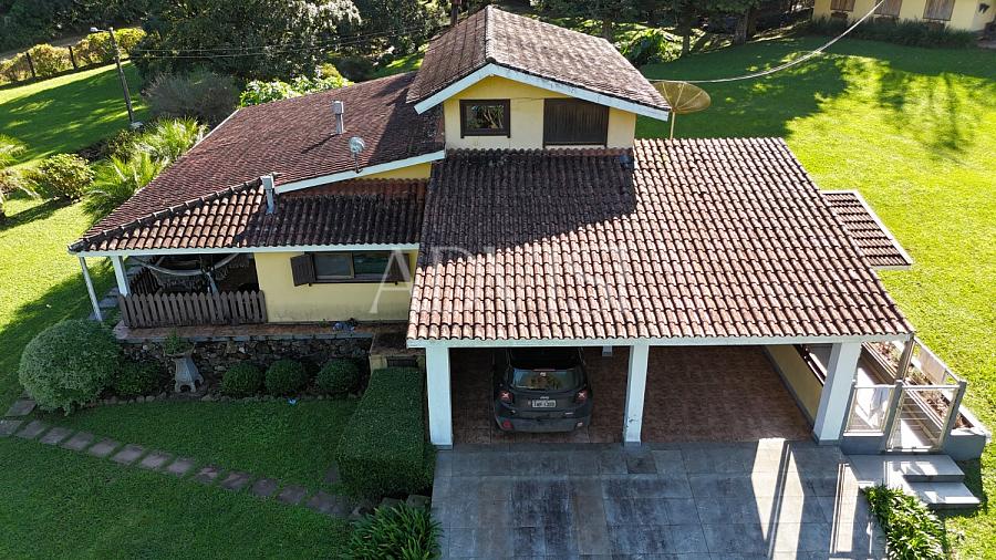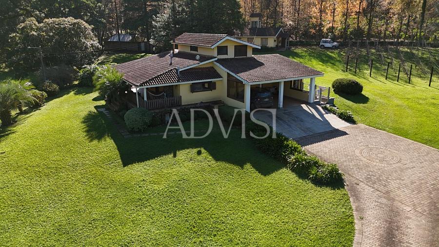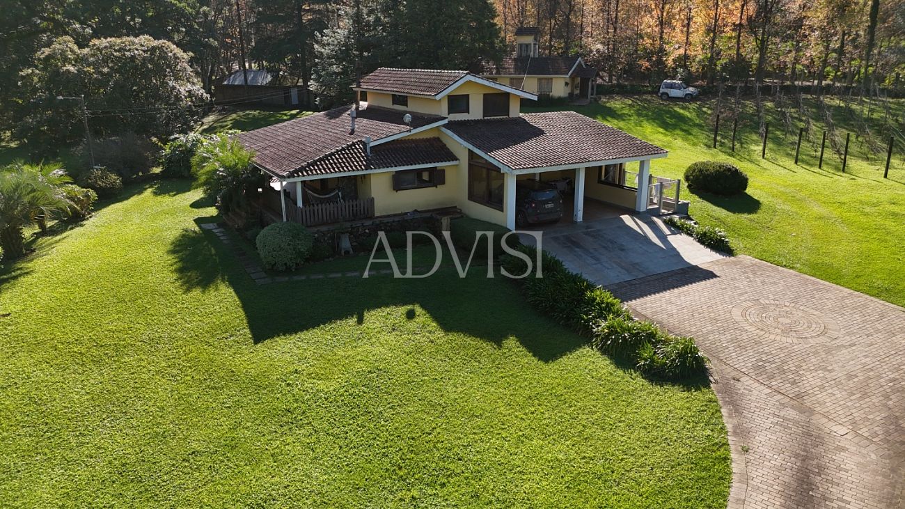 A residência principal possui 250 m², com 4 quartos, 2 banheiros, sala com lareira a lenha, cozinha, lavanderia, varanda coberta, 1 vaga de garagem coberta, canil, sistema de alarme completo e 4 aparelhos de ar-condicionado quente/frio. Tudo pensado para proporcionar conforto em todas as estações do ano.